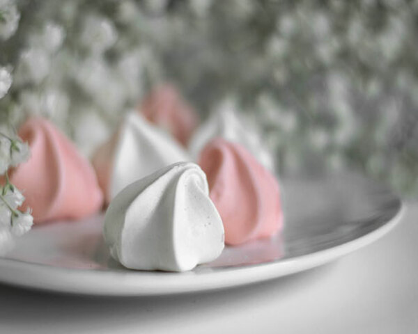 Die Baisers auf das Backblech legen, dabei mindestens einen Zentimeter Platz zwischen ihnen lassen, damit die Luft zirkulieren kann. Auf der mittleren Schiene bei 90 Grad etwa 1 Stunde lang backen, dann den Ofen ausschalten und weitere 1-2 Stunden geschlossen lassen. Die Baiser-Kekse sind fertig, wenn sie vollständig trocken sind.