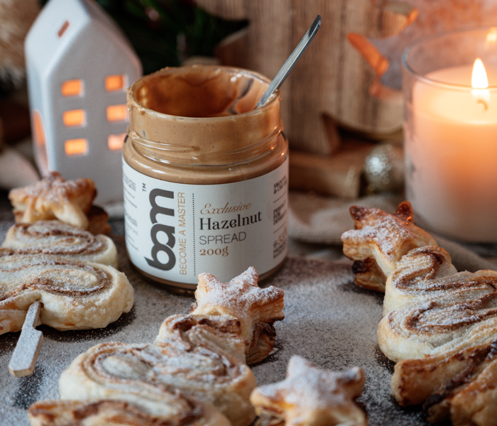 Wenn Sie auf der Suche nach einem Rezept für festliche Snacks sind, die fabelhaft aussehen und schnell zubereitet sind, dann sind die Weihnachtsbäume aus Haselnussblätterteig die perfekte Wahl. Der Haselnussaufstrich von BAM verleiht dem knusprigen Blätterteig einen kräftigen Geschmack, der perfekt dazu passt. Die Herstellung ist so einfach, dass sogar die Kinder beim Formen der Bäume helfen können.