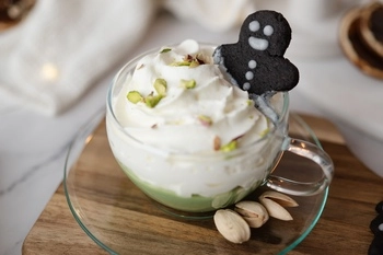 Heiße Pistazienschokolade mit schwarzen Keksen